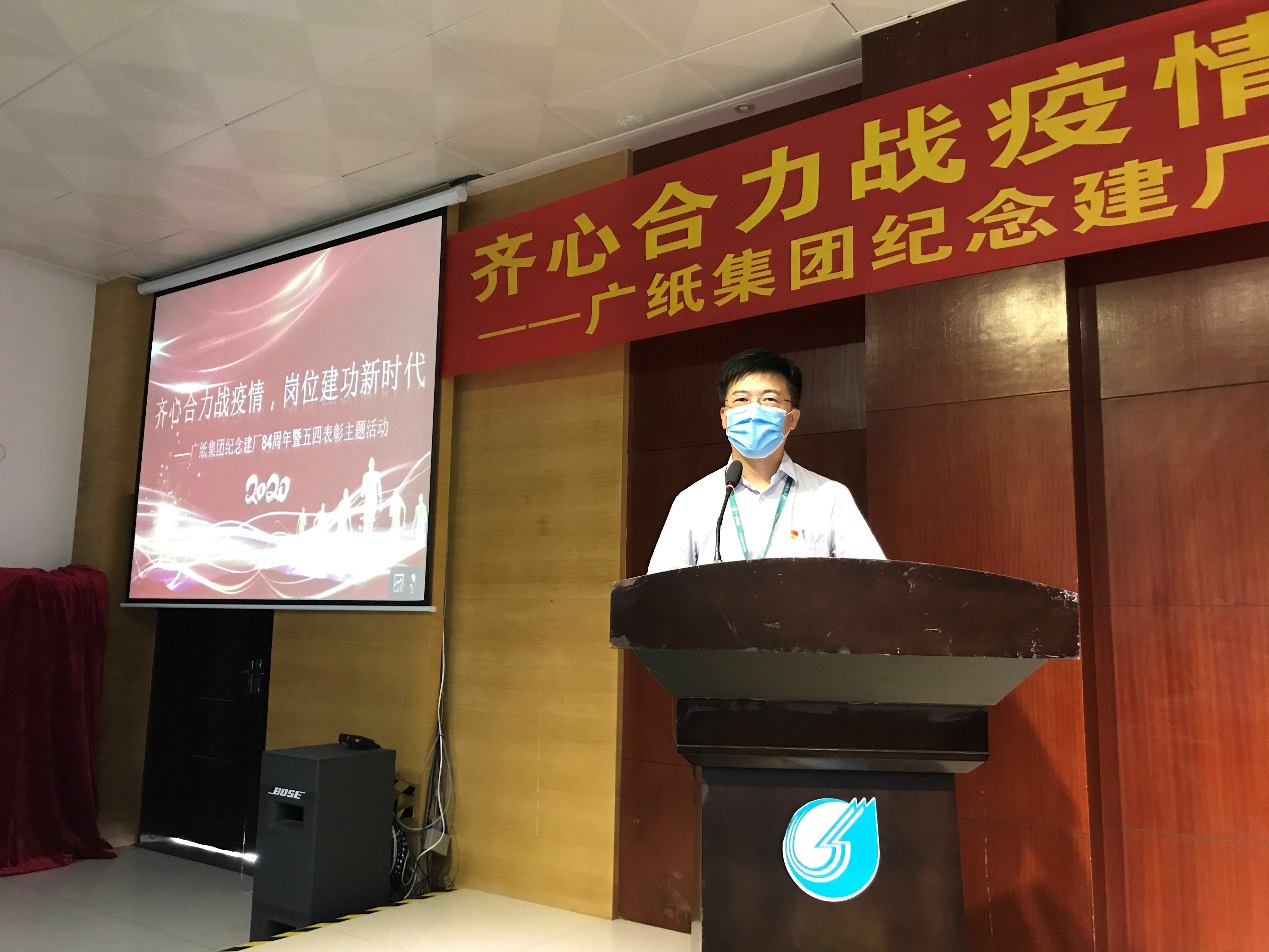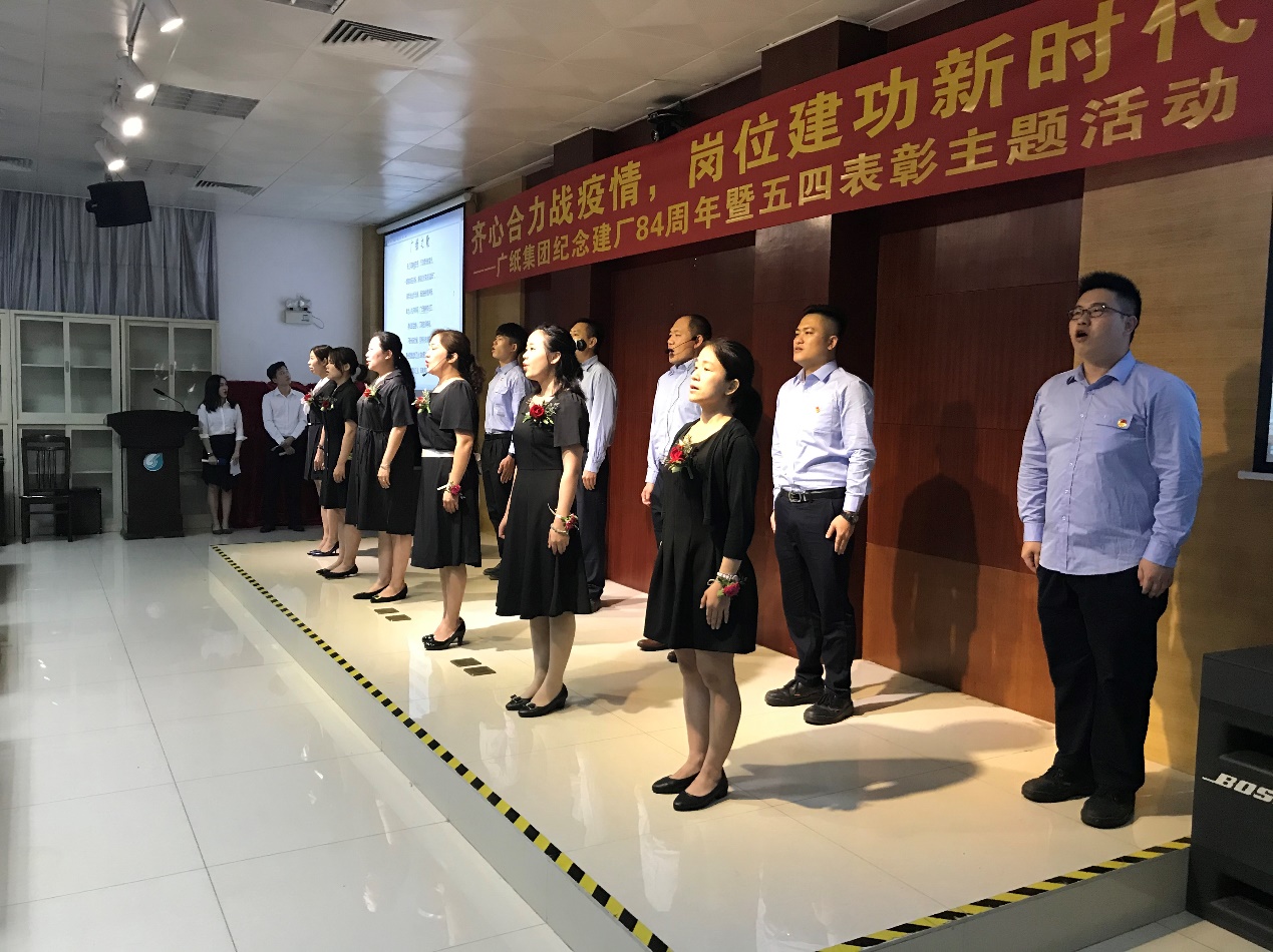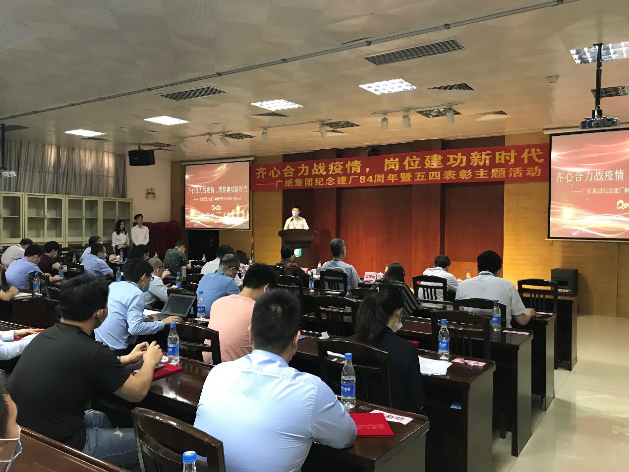 “珠江河畔郁苍苍,万顷绿洲披霞光……”活动伊始,全体人员现场齐唱《广纸之歌》。昂扬的旋律,积淀历史的歌词,催人奋进,鼓舞着新一代广纸人传承发扬老一辈广纸人的优良精神。接着,通过视频回顾了公司在疫情防控和复工复产期间的工作点滴,展现了在疫情大考面前,公司班子的坚强有力领导和全体员工的共同努力,展现了全体广纸人不惧挑战、团结一致战疫情并坚守岗位坚持推进生产工作的正能量和精气神。此外,还现场表彰了2019-2020年度共青团工作先进集体及先进个人,树立典型,激励先进。