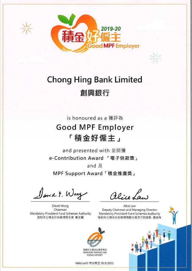 年度“积金好雇主”嘉许,并同时获得“电子供款奖”及“积金推广奖”两个特别奖项;
