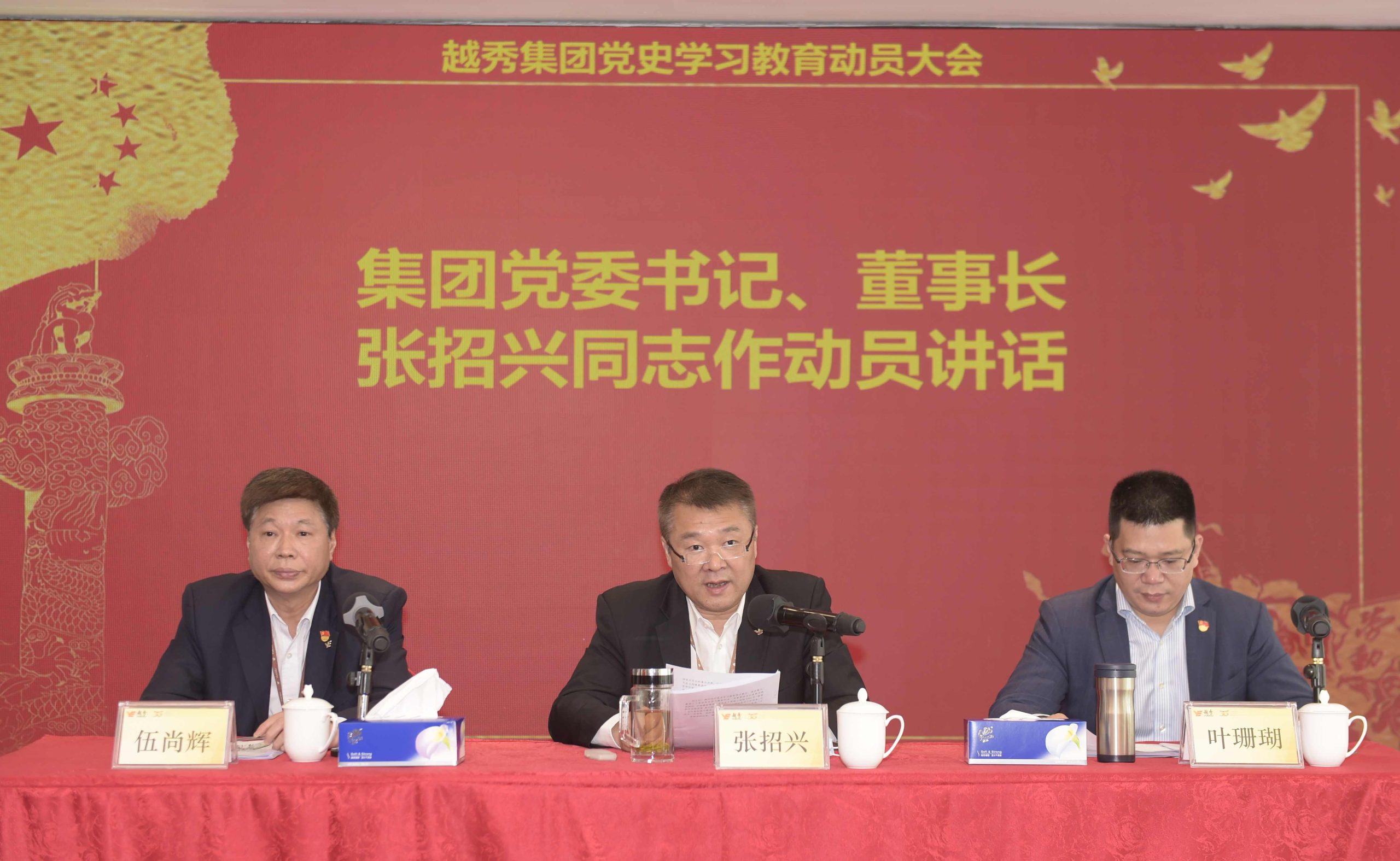 3月16日上午,越秀集团在广州国际金融中心58楼党员教育中心召开党史学习教育动员大会,对集团开展党史学习教育进行动员部署。集团党委书记、董事长张招兴作动员讲话;集团党委副书记、副董事长、总经理叶珊瑚主持会议并传达中央、省、市党史学习教育动员大会精神以及市国资系统党史学习教育动员部署会精神;集团党委副书记、董事伍尚辉就集团落实党史学习教育实施方案及第一阶段学习教育工作安排作说明。会议以视频方式覆盖至集团下属三、四级独立法人企业党组织,共设主分会场42个,参会人员约1200人。