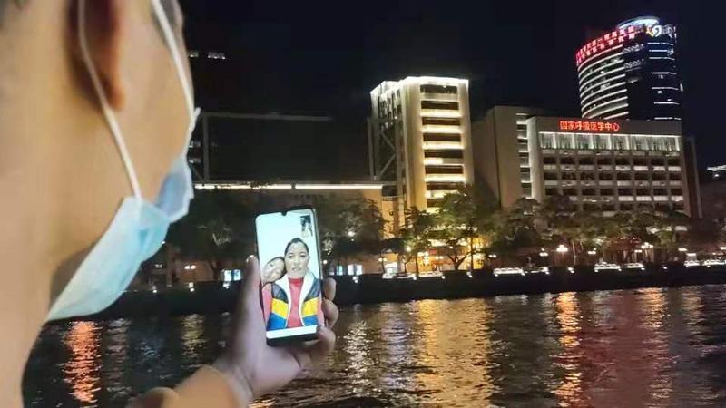 广州的美景让大家开心得连连拍照,发给远方的家人分享喜悦。记者现场看到,不少务工人员正在用手机微信视频给远方家人,让家人与他们一同欣赏广州景色,“爸爸,你那边景色好美呀”一位工友手机视频里小孩激动的跟爸爸说道。