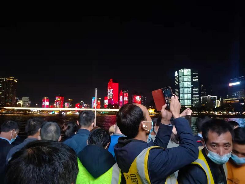2月12日的大年初一晚上,越秀集团租下了5条船,与中建三局、八局共同组织留穗过年的800位务工人员参加珠江夜游。工友们主要来自于贵州、四川、湖北等地,为了按时按质完成重大工程建设,他们一直在工地上埋头苦干,绝大部分工友还未曾好好看过广州美丽的夜景。今夜在珠江上领略着两岸的壮丽景色,品味着精神文化大餐,广大工友们感受到了广州浓浓的年味和节日气氛,也感受到了广州的温暖。