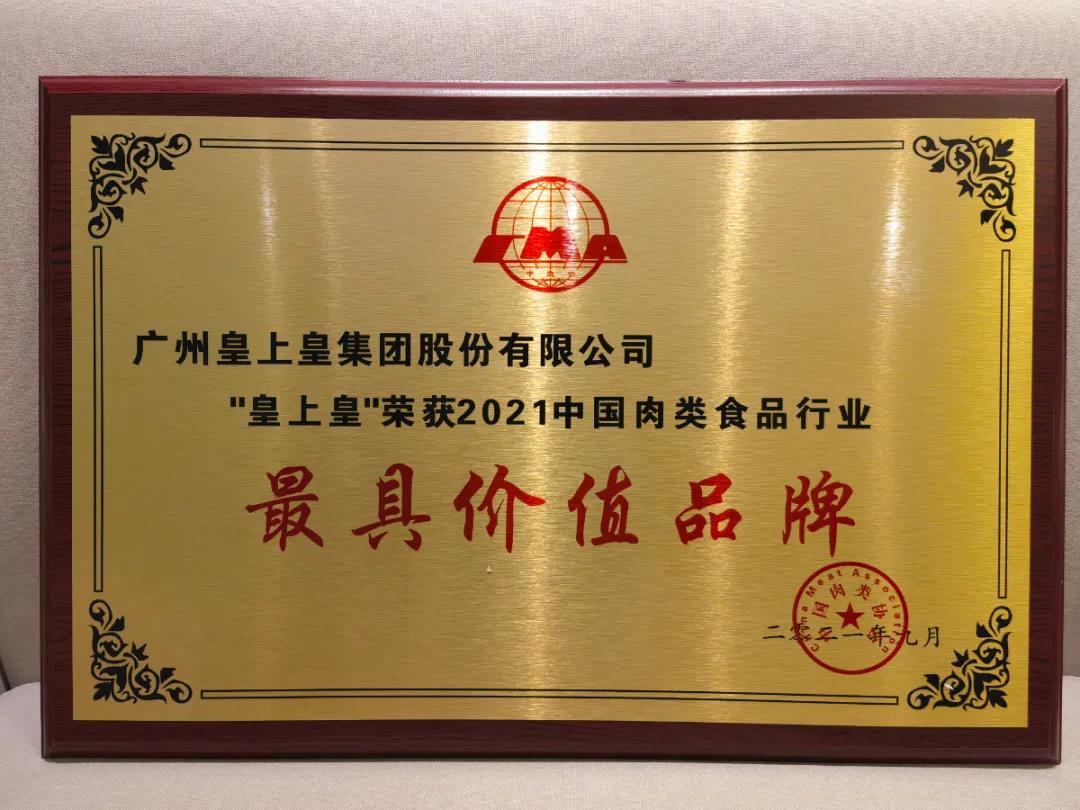 “中国肉类食品安全信用体系建设示范项目”是中国肉类协会根据国务院发布的《社会信用体系建设规划纲要》和中国肉类食品行业发展要求,开启具有食品行业规范作用的示范项目。项目每年发布示范企业信息,代表的是品质、安全、放心和诚信,目前参与该项目的均为肉类行业标杆或龙头企业。大会期间,皇上皇集团还被授予“2021中国肉类食品行业先进企业称号,“皇上皇”品牌荣获“2021中国肉类食品行业最具价值品牌