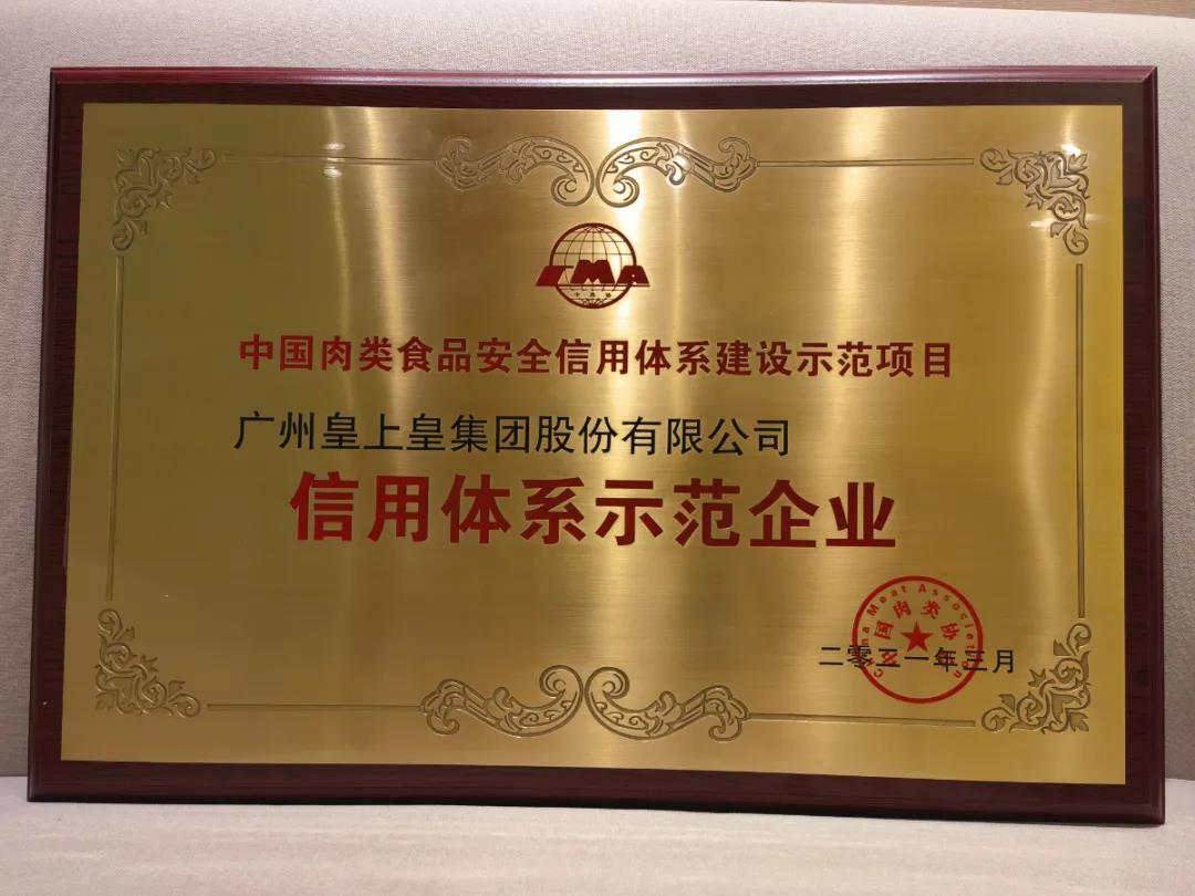 一直以来,皇上皇集团以食品安全为己任,实施“上控源头、中控物流与渠道、下控终端”战略,凭借先进的管理体系和过硬的产品品质,为消费者的“肉盘子”保驾护航。在2021年肉类产业发展大会上,皇上皇集团被授予中国肉类食品安全信用体系建设示范企业称号。
