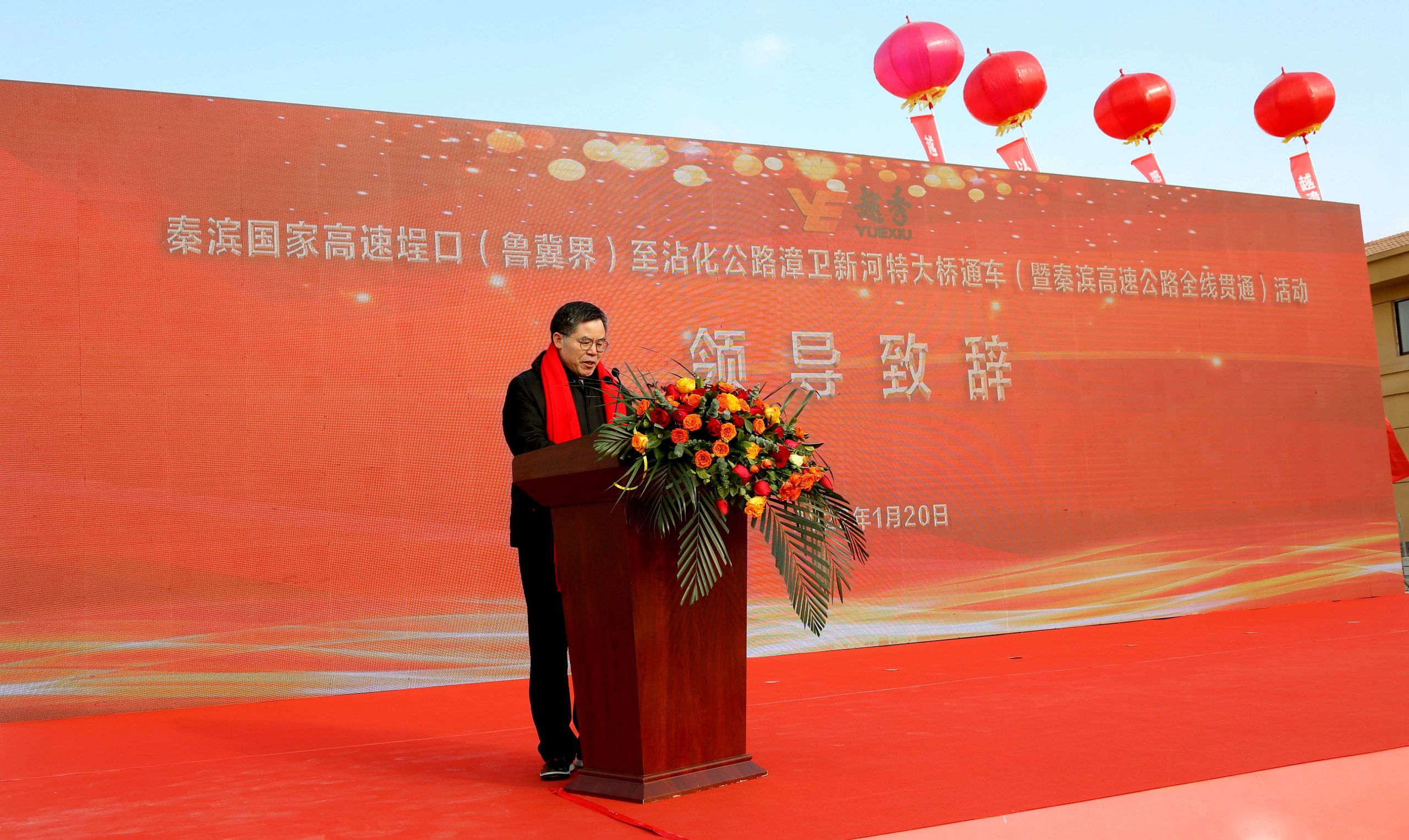 1月20日,越秀秦滨高速埕口(鲁冀界)至沾化公路漳卫新河特大桥通车暨秦滨高速全线贯通活动在秦滨高速北海停车区隆重举行。越秀集团首席资本运营官、越秀交通董事长李锋,越秀集团管理咨询协调委员会主任委员助理,越秀交通党委书记、总经理何柏青等领导出席了通车活动。